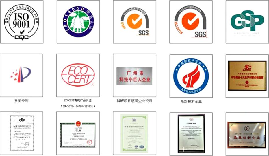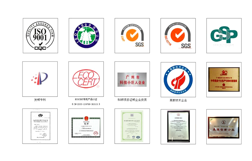 ●公司于2007年通過SGS公司的認證,并獲得GMPC證書● ●公司于2009年榮獲廣州市高新技術企業(yè)協(xié)會會員單位 ●公司于2011年獲得廣州市花都食品藥物質量管理協(xié)會第三屆名譽理事 ●公司于2011年獲得國家頒發(fā)的“高新技術企業(yè)”稱號 ●公司于2012年獲得廣州市花都區(qū)安全生產管理技術研究協(xié)會理事單位 ●公司于2012年通過法國ECOCERT(天然及有機化妝品認證)的認證 ●公司于2012年榮批廣州市花都區(qū)科信局頒發(fā)的“綠色化妝品工程技術中心”項目 ●公司于2012年獲得廣州市花都區(qū)知識產權試點企業(yè)稱號 ●公司于2012年成功簽訂廣東省科學技術廳4名科技特派委員 ●公司于2013年獲得廣州市花都區(qū)科學技術獎三等獎 ●公司于2013年通過ISO14001(環(huán)境管理體系認證證書),并獲得ISO0001證書 ●公司于2013年獲得2012年廣東省美容化妝品行業(yè)最具創(chuàng)新企業(yè) ●公司于2014年成功獲得科技小巨人資質 ●公司于2014年通過國家AAAA標準化良好行為認證,并獲得標準化良好行為證書 ●公司于2015年成立省級工程技術中心,獲批成立院士專家企業(yè)工作站 ●公司于2016年分析檢測中心獲國家CNAS認證 ●公司于2017年成功獲得中國化妝品“十佳制造商”稱號,連續(xù)五年獲得“有機工廠”認證 ●公司于2018年成功獲得中國化妝品供應鏈百強企業(yè)稱號 ●公司于2018年成功通過兩化融合管理評定,并獲得證書 ●公司于第24屆中國美容博覽會獲得“中國化妝品優(yōu)秀供應商” ●公司于2019年榮獲全球美妝供應鏈權威大獎——2019 COSMETECH OEM/ODM獎 |