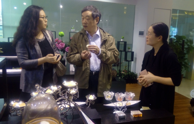 2017年2月22日,中國香料香精化妝品工業(yè)協(xié)會理事長陳少軍先生、中國香料香精化妝品工業(yè)協(xié)會項(xiàng)目合作部副主任王婷婷女士,蒞臨棟方股份考察交流。棟方股份董事長唐新明、技術(shù)顧問曾颯博士、技術(shù)研究部高合意工程師陪同參觀。