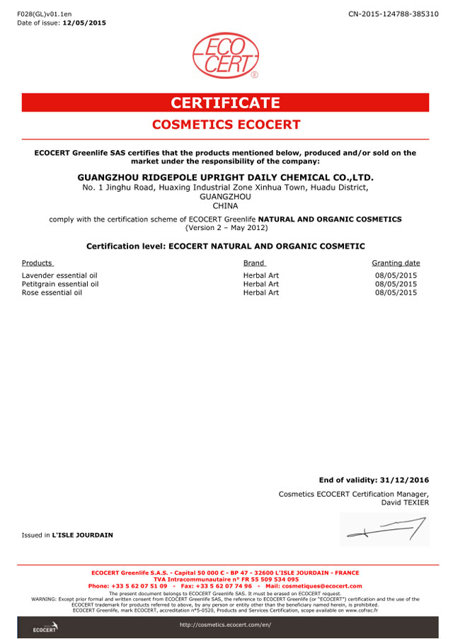 ○ 歐盟ECOCERT天然有機(jī)化妝品生產(chǎn)認(rèn)證證書(shū)