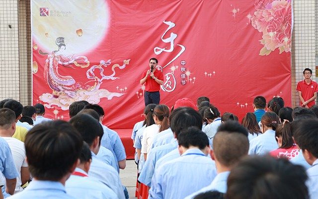 入場儀式結(jié)束后,棟方股份掌舵人唐董登臺(tái)致辭,向全體員工表達(dá)了最真摯的感謝和最誠摯的中秋祝福。