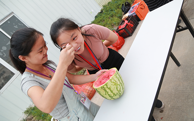 最后,是精彩紛呈的猜燈謎環(huán)節(jié)和妙趣橫生的“吃西瓜”和“喝可樂”比賽游戲環(huán)節(jié)。