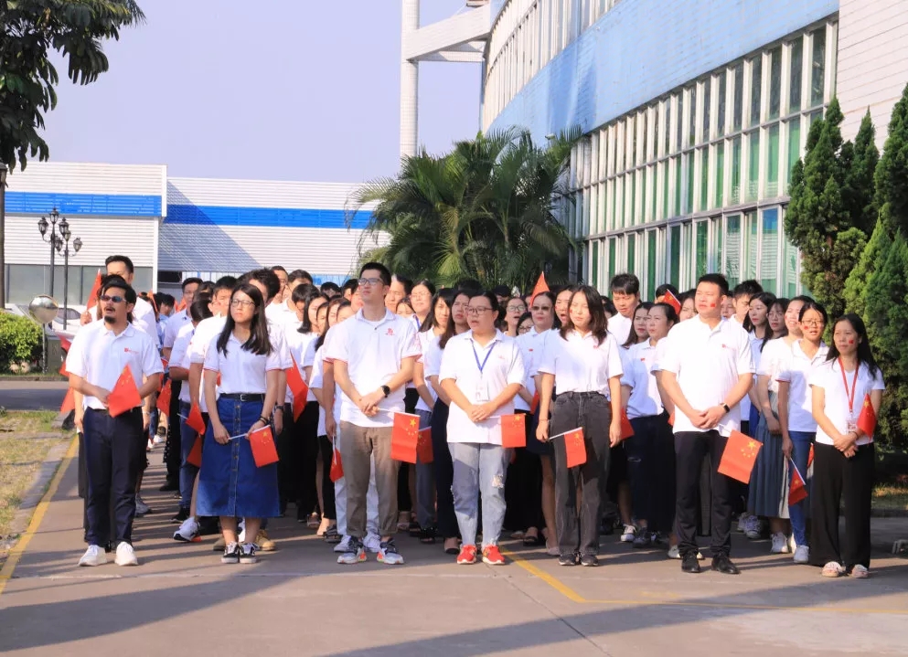 2019年9月30日,星期一,十一國(guó)慶節(jié)前夕,棟方股份公司大樓前面空地、數(shù)百次國(guó)旗升起的地方,今天迎來(lái)了一次特殊的周一升國(guó)旗儀式,因?yàn)槊魈炀褪俏覀儌ゴ笞鎳?guó)母親的七十華誕,七十載壯麗歷程,賦予了今天棟方企業(yè)早會(huì)升旗儀式不同尋常的意義。