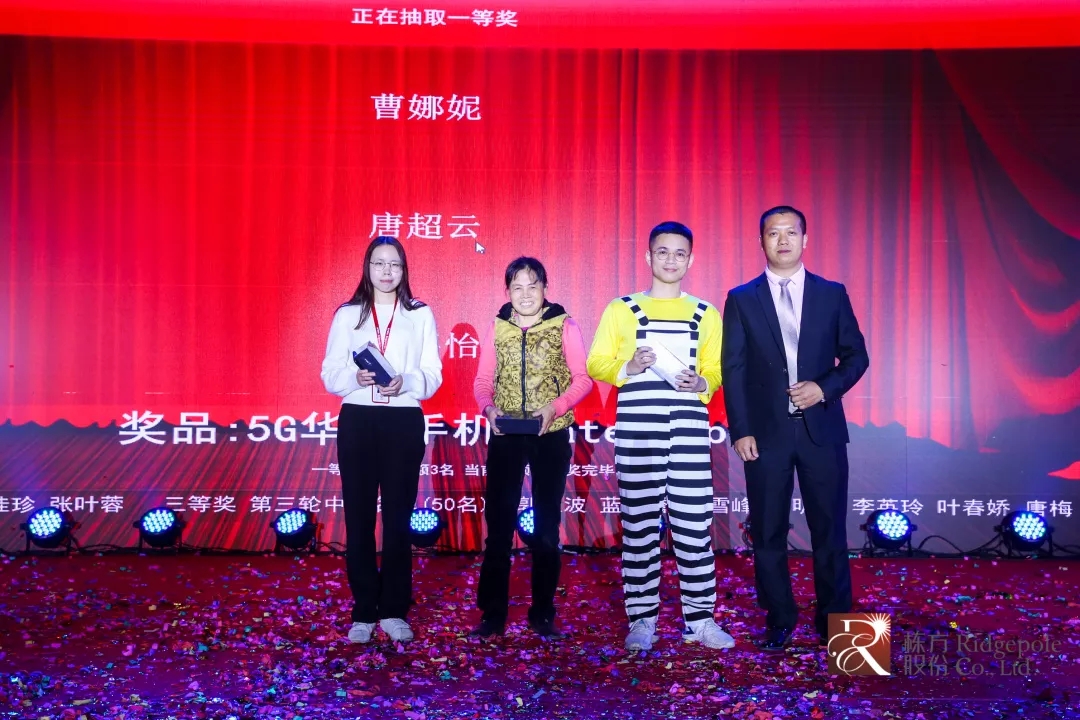 今年,公司為員工精心準(zhǔn)備的獎(jiǎng)品除現(xiàn)金紅包、紀(jì)念金鈔外,還有華為手機(jī)以及萬(wàn)元家庭游豪華大獎(jiǎng)。