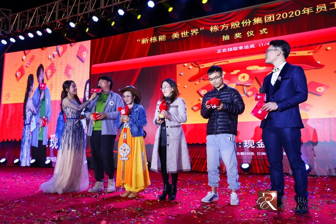 伴隨著動(dòng)感澎湃的燈光秀, “新棟能·美世界”棟方股份集團(tuán)2020年員工迎新晚會(huì)正式拉開(kāi)序幕,集團(tuán)領(lǐng)導(dǎo)倪總、邱總分別登臺(tái)致辭;