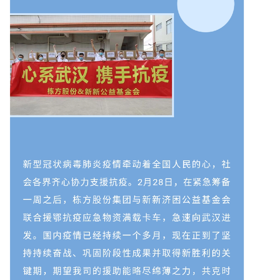 我們心在一起丨棟方股份聯(lián)合新新公益基金會援鄂抗疫紀實