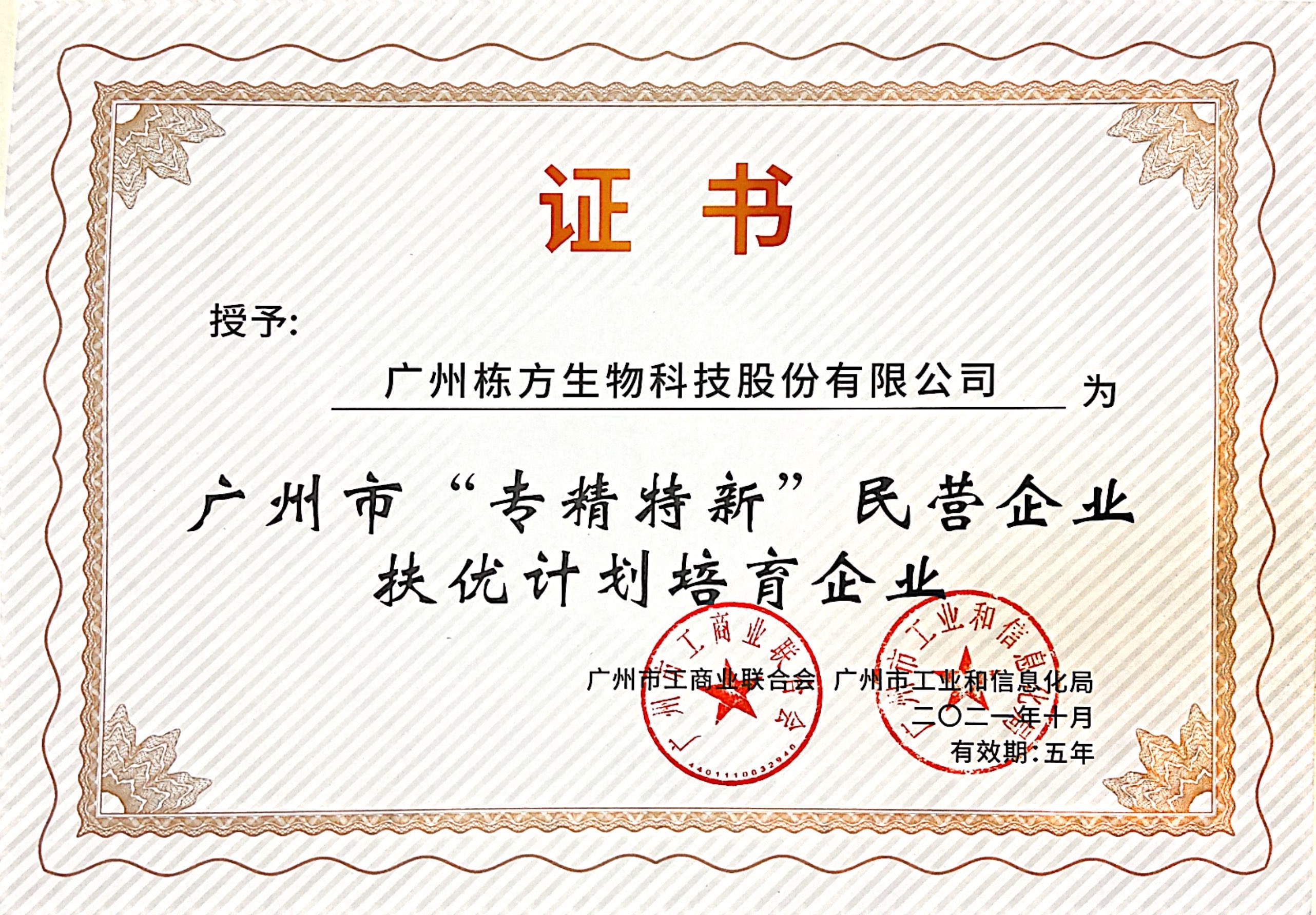 據(jù)悉,在本次遴選活動(dòng)中,廣州市總共遴選1000家民營(yíng)企業(yè),其中268家入選首批廣州市“專精特新”民營(yíng)企業(yè)扶優(yōu)計(jì)劃培育企業(yè)。此次入選,充分體現(xiàn)了棟方股份在產(chǎn)品研發(fā)、智能制造、創(chuàng)新能力及未來發(fā)展前景得到了相關(guān)政府部門的充分肯定,有利于提升核心競(jìng)爭(zhēng)力和知名度,對(duì)企業(yè)發(fā)展產(chǎn)生積極影響。
