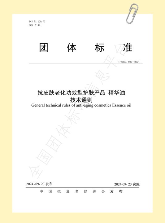 近日,由中國抗衰老促進(jìn)會(huì)歸口管理、棟方股份參與起草的國內(nèi)首部《抗皮膚老化功效型護(hù)膚產(chǎn)品 精華油技術(shù)通則》團(tuán)體標(biāo)準(zhǔn)(T/ZGKSL 020—2024)正式發(fā)布。